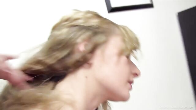 Description:Penelope may have turned 18 only a few weeks ago but she already has a better head on her shoulders than most of the other girls that stop by here. She decided to make her mark in the porn world as soon as she turned legal. Luckily I'm the first guy she came across (not so lucky for her). Cute, blonde, a great cock sucker, does anal, business minded...she could go far in this biz if I was a real casting agent. After verifying her IDs I go through my usual spiel about $1000-$5000 per day. Penelope's eye light up and it's easy to get her to do whatever I want from that point forward. I sample her shaved pussy (tastes like candy) and enjoy her BJ skills, bang her on the couch and make her lick up her own pussy juice from my cock. But she needs to go the extra mile to get those modeling jobs I promised her. This means anal. Not a problem. She instructs me on which position works best for her to fuck her in the naughty hole and after some lube and fingering I glide right in to heaven. After pounding her ass like a mad man I pull out and shove my cock in her pussy to deliver an ambush creampie that oozes out of her like a marshmallow cup cake that's been squeezed too hard. She is so proud of her own performance that she doesn't bat an eye when I reveal that today's "demo tape" isn't paid and instead she'll hear back from the producers within a few weeks.