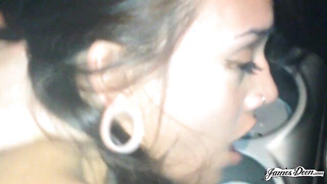 Description: Janice Griffith wears a flower-printed dress under a brown cardigan as she hops into James Deen’s car. She has a pair of eyeglasses on making her look nerdy. She looks too innocent when she smiles especially with her pearly white teeth shining brightly in the dark. As soon as James starts driving away from where he picked her up, her aura and attitude shifted from this school girl feeling to a sexy vixen kind-of-vibe. But any action didn’t happen right away, they simply talked, trying to get to know each other. The sexual tension between them rises as they continue to drive and learn more about each other. At that moment, Janice takes initiative and takes off her cardigan. She lets him know that she’s ready as she spreads her legs widely apart. She pushes her dress down to her stomach setting her small tits free. At the sight of her cute breasts and hardened nipples, James instantly stretches his arms out pushing her dress up so he can touch her already wet and tight pussy. He slowly rubs her clit with just one finger making her moan at the pleasure before using his other fingers to play with the walls of her pussy. The sensation sends electricity all over her body that she adjusts the passenger seat before putting her legs up, bending her knees and spreading them widely. James parked the car in the darkest corner of the street. He then makes Janice’s whole body face him before putting her right foot under his gray long-sleeved top. Filled with lustful desires and the will to prove that she is more than an amateur porn star, she strikes right away. She aimed for his big dick. She grabbed it, licked it but he stopped her before she can even deep throat his full member. He gives her a peck on the lips as he drives away from the darkness. No one even bothered to put their clothes back on as they head inside James’ bedroom. Janice, still wearing her eyeglasses, a pair of earrings, a green armlet and a beaded bracelet, now patiently waits on the bed covered with dark brown sheets. She lies down on the edge of the bed as James, now fully naked, approaches. He kneels beside it and tongue fucks her. His warm breath and wet tongue roaming around her clit and the walls of her pussy make her shiver. She grabs on the sheets so hard and lifts herself up wanting to see how he does it. Before she can even take a peek, he rams his hard cock into her wet and tight pussy. She loudly moaned at the unexpected action. He puts one of legs on top of his shoulders. This position definitely turns her on ever more. Feeling his cock throbbing and her pussy thudding, he pulls out of her. He just didn’t want her to cum yet. James lets her suck his dick for some time. He then drags and makes Janice face the gray wall just beside bedroom door. He enters her pussy from behind and fucks her so hard that she had her first orgasm before he can even pull his dick out. She once again gave him a blowjob, licking her warm cum from his cock. The petite beauty and the porn star headed back to the bed for more rough sex. He lies down on the bed as she lies on top of him. He thrusts his big dick on her wet pussy again. She takes the matter into her very own hands as she sits up and begins riding his dick hard as fuck. She then sits on his face giving his tongue and mouth direct access to her pussy as she deepthroats him. They shifted into missionary position before Janice Griffith goes down on her knees and sucks his hard cock as if her life depended on it. Without any warning, James Deen came inside her mouth. She swallows his cum without any hesitation.