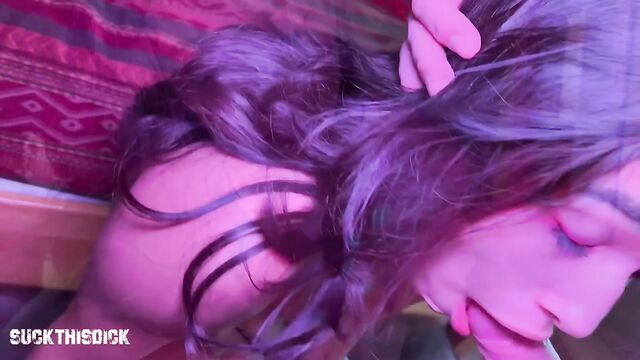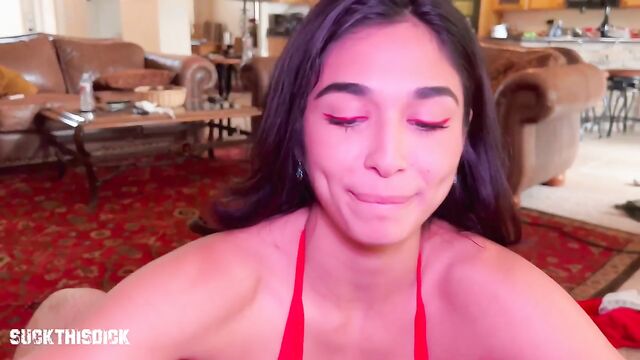 Description: Sexy Latina newcomer Reina Rae has returned to SuckThisDick. She tells us everybody loved the first scene and she loves sucking this dick so she had to come back. We start making out on the couch and she tells me she's glad she came back and really wants to suck this dick. She rubs my cock until it;s hard and takes it out. I tell her to start slow and take her time with the dick. She starts to suck my cock and my balls and licks my taint. She deepthroats it and I fuck her face and blow a load inside her pretty mouth. She swallows it all like a good girl. In the bedroom she sucks my cock and deepthroats it until tears come out of her eyes. I stand up and fuck her face and then she sucks my cock until I give her a throat pie! Reina Rae just sucked this dick!