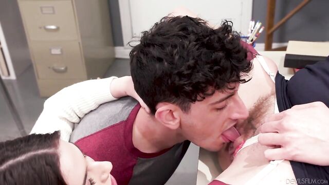 Description:Chanel Camryn and Nick Strokes are both sitting in detention, with their teacher Rachael Cavalli staring daggers at them from behind her desk. It turns out that Chanel was caught giving Nick a blowjob behind the administration building. Rachael asks them how they could do something so STUPID. Chanel and Nick are three weeks away from graduating, and the principal is even thinking of expelling them! Why would they jeopardize their entire education for something so reckless?!Chanel and Nick plead forgiveness. They swear it was just a spur-of-the-moment thing and that they'll never do it again! Can't Rachael just turn a blind eye just this once? Their parents will totally freak out if they find out they did something so naughty, not to mention that Chanel and Nick are both valedictorians for their year. If they get kicked out of school now, they'll be the laughingstock of the whole grade!Rachael sympathizes with the two teens. After all, she's been their age before and knows just how powerful the urge to get frisky can be. But if she's going to let her two students off the hook, she wants to make sure to teach them a good lesson... by supervising them through their first threesome, of course!