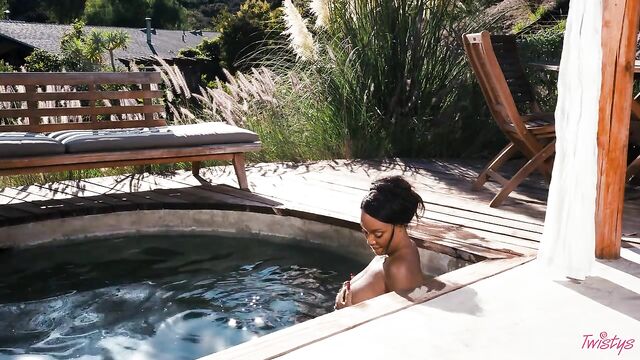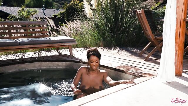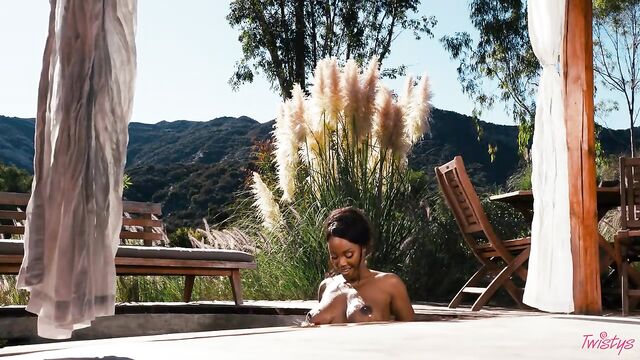 Description: It may be getting colder outside, but you'll forget all about that when you feel the sweltering heat of August Skye, your November Twistys Treat of the Month. August starts with a tease in a bandeau top, skirt, and shimmery body chains, heating things up with lots of smoldering eye contact. Then it's time to hit the pool in a green bikini, which she pulls down to show her big tits and perfect bubble booty, shaking her ass before she has a skinny-dip! August plays with her pussy and fucks herself with a toy by the pool, bending over to finger herself, then rubbing her clit till she cums.