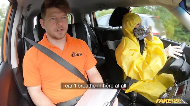 Description:Now that restrictions have eased up, I was able to start giving lessons again. My student for the day was Lexi Dona. There was no way to miss her, because she was wearing a bright yellow hazmat suit! "Scared for her health," she said. Lexi was experienced enough, but kept complaining about the heat. The Mean Orange Machine has admittedly seen better days, and the AC is out. Lexi unzipped her suit and took it off her shoulders. I saw she was only wearing a naughty black bra underneath and I could see her perky tits, so I subtly took out my cock. I was so horny, so covering my cock with my clipboard, I had a wank. Lexi swerved, and reaching for the gear stick, she met my hard shaft. Enjoying this new shifter, Lexi suggested we pull over quiet, and soon enough, she was giving me a blowjob. Lexi rode my cock in the front seat, then I fucked her missionary in the back. Finally, I made her climax doggystyle on the car's hood, then came on her ass!