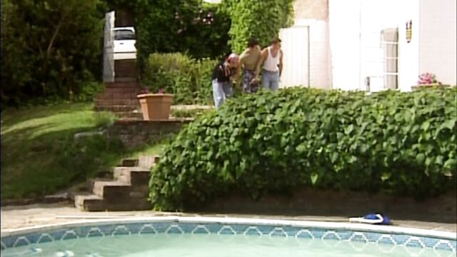 Description:Diana is outside cleaning the pool when a man stops by and she joins him in the living room. They start to fool around and soon he is rubbing her hairy pussy. After sucking his cock she mounts him and they fuck there on the couch. A few more guys stop by and she's soon sucking and fucking them all.
