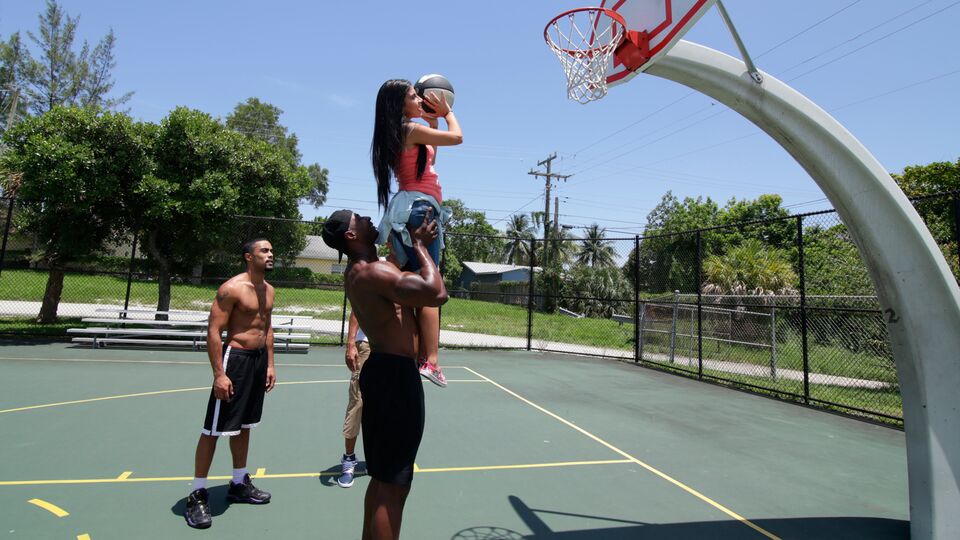 Description: Man, do we have a treat for you guys this week! This week's Monsters of Cock features Michelle Martinez taking on 3 Monster cocks. Michelle approaches these three guys at playing basketball and asks them to teach her. Once they teach her a bit about basketball, she demands them to teach her more. So they take her to their crib to teach her what 3 monster cocks stretching that pussy feels like. She swallows their monsters cocks and loves every minute of it. They each took turns pounding that pussy in several different positions. Meanwhile, she guzzled cock at the other end.