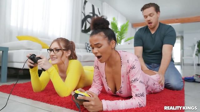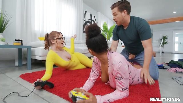 Description:When Kyle Mason returns from folding Alina Ali's laundry, he finds his girlfriend, Aria Kai, making out with and fingering Alina through her enticing onesie butt flap, while they play video games. Kyle is heartbroken until Alina invites him to take her open butt flap for a spin with his hard cock. Free-use sex ensues between Kyle and Alina, until Aria realizes she's been left out and demands Kyle fuck her hard as well. Eventually, gaming gets set aside for a full-on, intense threesome, which leaves everyone satisfied. But after all that, who's going to deal with the pile of laundry?