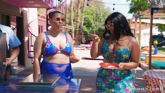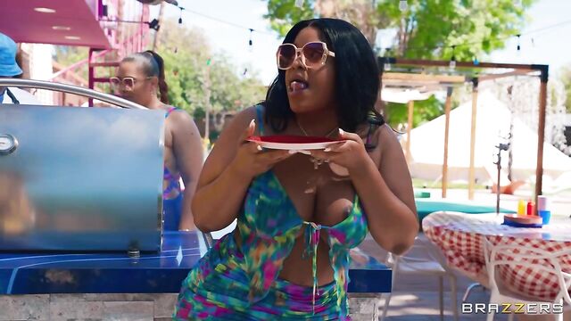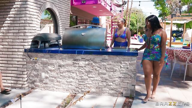 Description: Scott Nails and his wife are throwing a summer BBQ and as they prep the yard, Scott gets a boner watching his better half bend over. He decides to pull it out just as Jayla Page and her friend turn the corner, and they get an eyeful of hard cock. Scott covers up before he’s caught. Jayla can’t stop thinking about that cock and pursues Scott inside for a sneaky kitchen bj. When his wife almost catches them, Scott gets too nervous to continue. He heads outside to the BBQ. Jayla gets the help of her friend to distract her own husband as she sneaky fucks Scott. And they almost get away with it too, if it weren’t for the leaky facial on her cheek at dinner.
