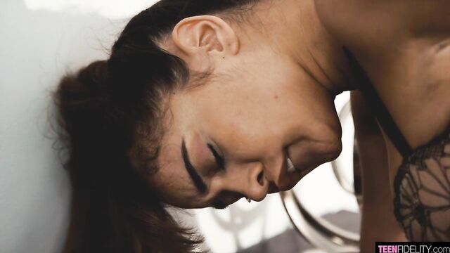 Description:Ginebra knows just how to get Tommy going. Lace thigh-highs draw your eyes to her perfect teen ass as she peels off her panties to play with her pussy. Her tight cunt wrapped around Tommy's dick brings him right to the edge before she licks her juice off his cock and makes him cum all over her pretty face.