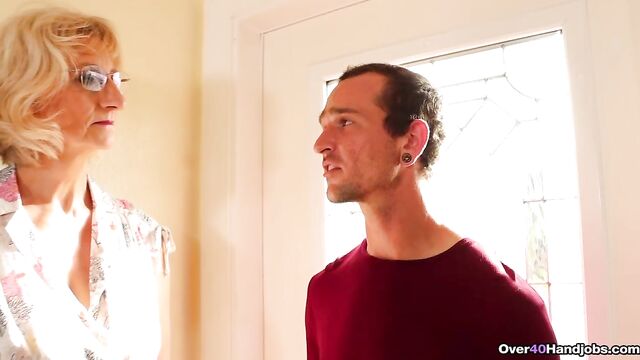 Description: Rumor has it that Morgan Shipley has incredibly soft hands and the men in the neighborhood are talking about it. One of them is curious to find out if this is true, so he visits the mature GILF to see for himself. What he doesn't expect is that Mrs. Shipley will give him an amazing handjob in the living room of her house that will make him fill the room with cum.