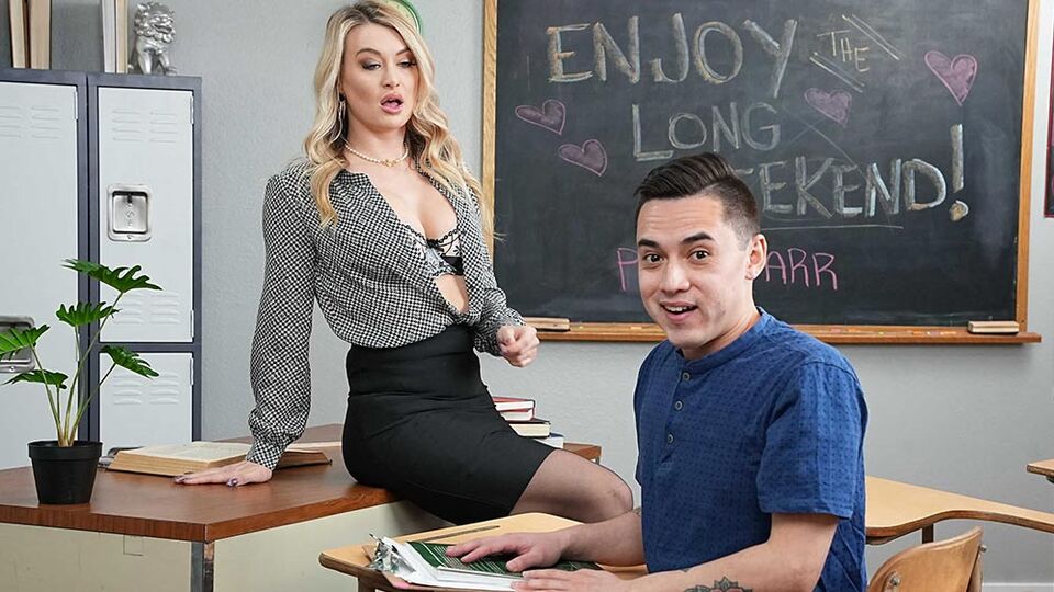 Description: It's a long weekend, and sexy professor Natalia Starr is on the phone planning a trip with friends to Mexico to relax and fuck as many Latino hunks they can find. But she didn't notice that her student Juan was listening to every single word she saying on the phone. Juan jokingly says that he can do the job, but Professor Starr takes him up on it to see if he can warm up her wet pussy!