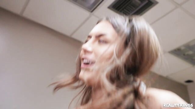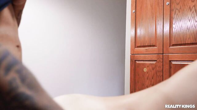 Description:Selina Bentz's track teammates are barely even trying, but Selina is giving it her all on the treadmill, hoping to catch the attention of coach Mike Ox. After the workout, instead of going with her teammates, Selina gets naked in the locker room and starts touching herself, and sure enough Mike sees her and starts jacking off. The college athlete tells her coach to join her, and Selina sucks his cock before he fucks her doggystyle on a bench. The runner bounces on that dick and takes a big load before running off!