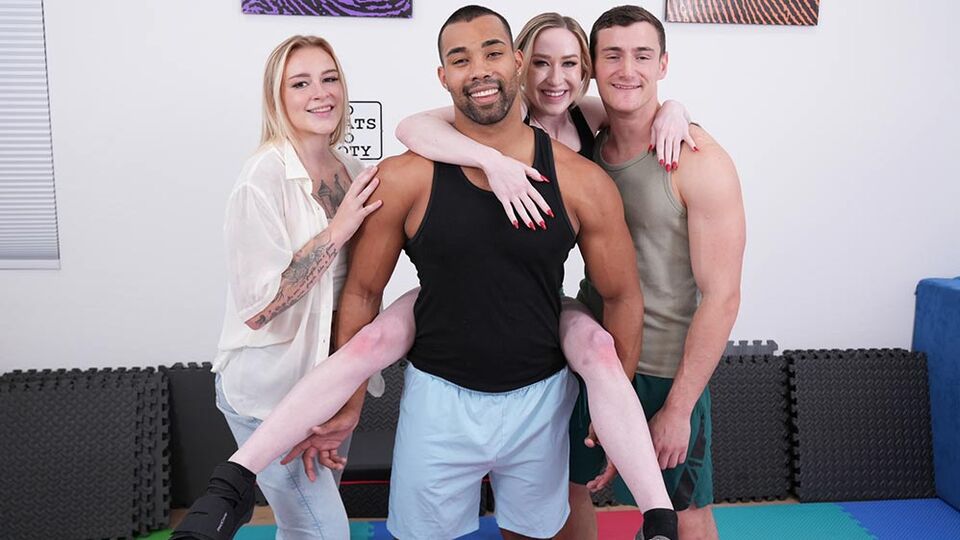 Description:Alaina Taylor runs a web channel devoted to fitness along with Tommy Parker and Jaxson Briggs. Due to a injury she has been limited in her filming so she mostly has Jaxson do the exercises during sessions. This became an issue when Jaxson's significant other, Sammy, she stumbled on them during a session and became upset at what she saw. This led to an argument between Sammy and Jaxson. Tommy excused himself and Alaina stuck around to try and comfort Jaxson. Jaxson stated that with the way Sammy reacted he should have just done something. Alaina tells him she would be all for it if things actually got to that point. They kiss and start to have sex. A little bit into sex Tommy shows up stating he forgot his equipment. Aliana asks him to join in and they end up having a threesome.