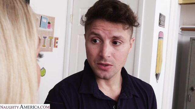 Description: Sadie Summers catches her student watching porn in class. As a punishment she has him write lines on the board. She is curious why he was watching porn in her class though and her student confesses that he just can't keep his mind off of sex long enough to concentrate in class. Sadie, being the A+ teacher that she is, decides to help him out by fucking him to completion and clearing his clouded mind.