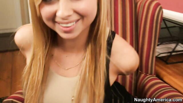 Description: Molly Bennett is such a good wife. She brings her hardworking husband his lunch to his office and tells him how much she loves him. And when she finds out that he's at work all alone, she gives him a blowjob in his office! The sexy petite blonde even fucks him right in his workplace and stroke his big dick off so he spurts his love juice all over her pretty little face.