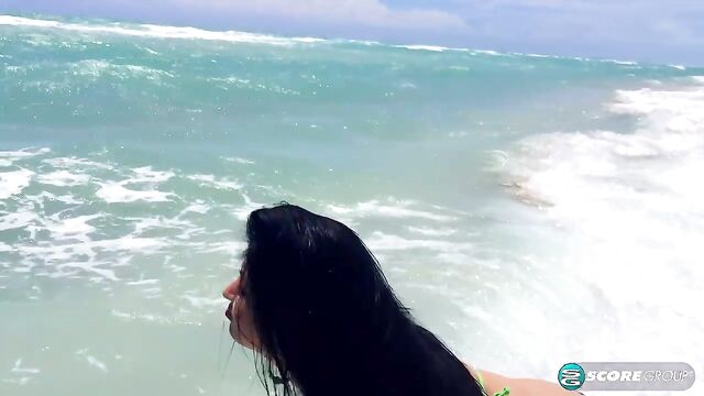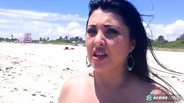 Description: Daylene Rio rode the SCOREMobile to the famous "clothing-optional" section of Haulover Beach north of Miami Beach--widely recognized as the best nude beach in the States. While the crowds who spend the day at Haulover tend to have a laissez-faire attitude, some people couldn't help but ogle Daylene whether she wore her bikini or was totally nude. It wasn't her nakedness. It was her spectacular body! Even the beachgoers at Haulover were not prepared to see a famous SCORE Girl. You could go to any nude beach in the world every day for a year and probably never see any woman as built as Daylene. If you ever do, tell her about BeASCOREModel.com.