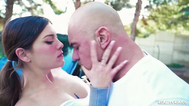 Description:Cute teen Agatha Shay needs some assistance! Her car broke down by the side of the road, and luckily Christian Clay pulls up and offers to help. He takes a look under Agatha's hood, then calls roadside assistance. Despite a language barrier, Agatha wants to communicate her gratitude, so she thanks Christian with the universal tongue of a blowjob. He licks her pussy, then fucks her against the side of his car. Agatha rides him in the backseat and on the ground.