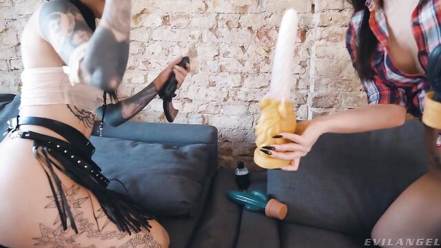 Description: Booty-blessed XXX star Kristy Black joins cute starlet Morea Black in a kinky lesbian session. The girls kick things off with a tease intro, both decked out in sexy cowgirl outfits. Kristy models a pair of jean shorts that perfectly highlight her luscious booty, while Morea wears sheer pants with a thong underneath. They strip off their bottoms and shake their juicy butts, soon whipping out a pair of cactus-shaped dildos! They take turns cramming the toys into each other's asshole, inciting massive anal gaping! Both girls enjoy tasty, ass-to-mouth flavor through this playful encounter as they shove an array of different props into each other's rectum.