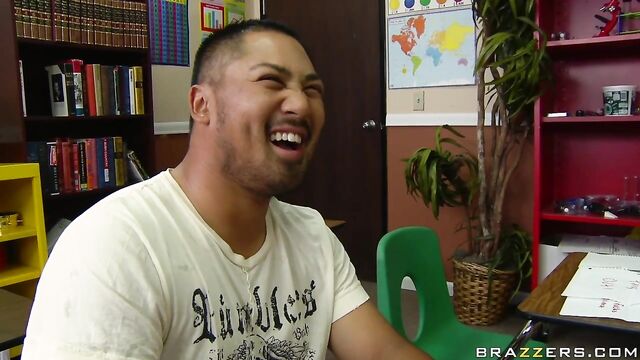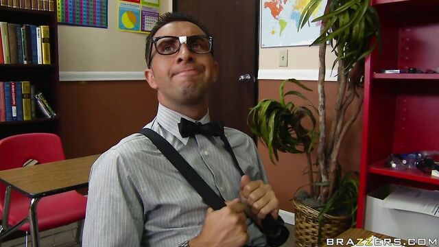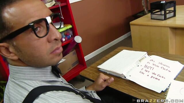 Description:While Mrs Tabitha is teaching math, Keiran and a classmate are passing notes commenting on the teacher's big tits. As a prank, Keiran goes up to the front of the class and pretends to hump the teacher. He takes the joke a bit to far by taking out his dick. When he gets busted, Tabitha decides to give him a one on one punishment.