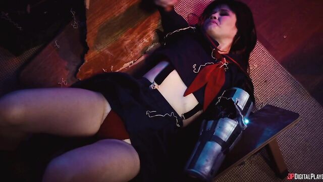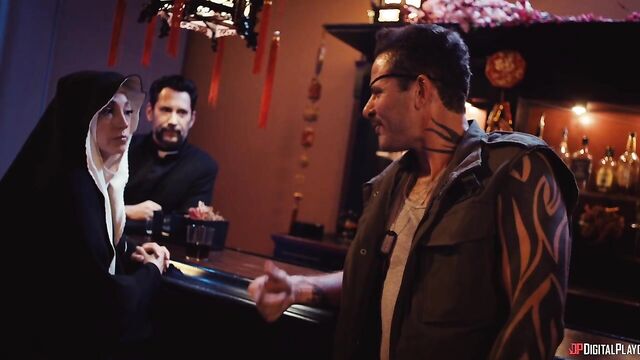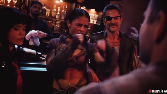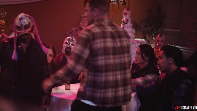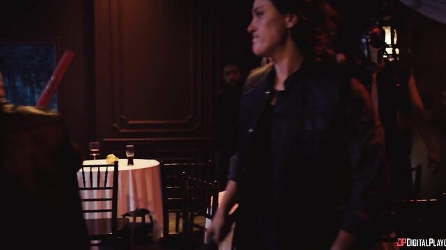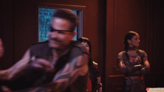 Description:Training under kung-fu master Miller Six, Sarah is soon fully recovered and stronger than ever, and she's got a wedding to ruin. With some backup from bikers Smoke and Christie (Yhivi), Sarah crashes her sister's nuptials and isn't put off by the guest list: the strongest criminal organizations in the city. They start a massive brawl, but when Christie faces off against masked, muscular Ridley (Jmac), a different type of sparks fly. She puts him down on his back and puts her tits in his face, then sucks his cock. Soon the hung hooligan is fucking her pussy and going deep in her ass. Meanwhile, Sarah's battled her way through the guests and sets her sights on the bride and groom's table...