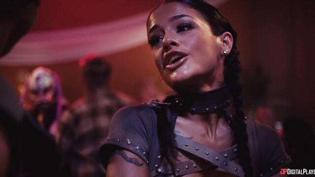 Description: Training under kung-fu master Miller Six, Sarah is soon fully recovered and stronger than ever, and she's got a wedding to ruin. With some backup from bikers Smoke and Christie (Yhivi), Sarah crashes her sister's nuptials and isn't put off by the guest list: the strongest criminal organizations in the city. They start a massive brawl, but when Christie faces off against masked, muscular Ridley (Jmac), a different type of sparks fly. She puts him down on his back and puts her tits in his face, then sucks his cock. Soon the hung hooligan is fucking her pussy and going deep in her ass. Meanwhile, Sarah's battled her way through the guests and sets her sights on the bride and groom's table...