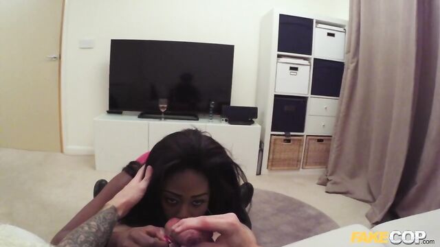 Description:Another late night shift and another pair of legs open. I’ve spotted a leggy ebony chick walking the streets late at night…must be a hooker!. But no, when I pull her over, she explains that she was a stripper, and she was just our getting some fags from the shop. It sounded innocent enough, but I just wanted to keep her talking. I told her that I wanted to make sure that she knew what I had in mind, so I asked her to blow into something. She knew I just wanted to she her big lips wrapped around something! Sure enough, she fell for my policeman charm and she invited me back to her place for a glass of wine or two. Back at her apartment, she treated me to a VIP striptease before I buried my face and cock deep into her pussy.