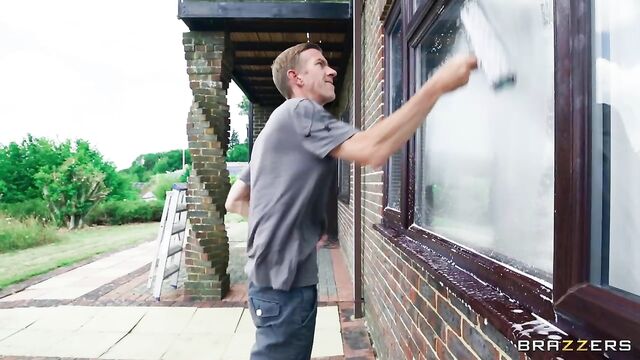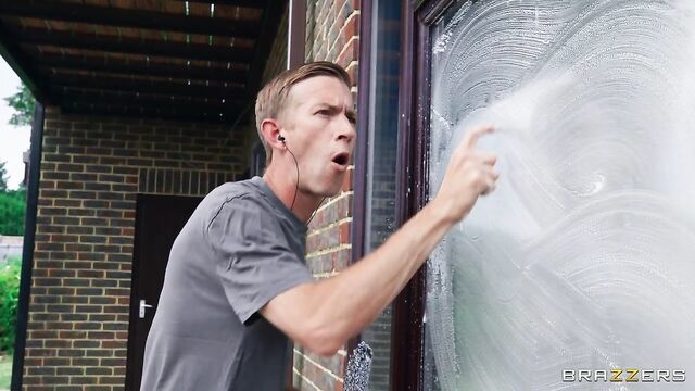 Description: Scarlett Starr is enjoying some me time playing with her pussy when wacky window washer, Danny D, shows up at her window. Scarlett quickly shuts him out of the show but doubles back to give him a quick cheeky peek. Danny decides to take his dick out, not realizing that behind the freshly closed curtains is Scarlett’s boyfriend. Her man can sense she’s up to no good and peels back the drapery to reveal a now naked Danny with his dick in his hand. Her boyfriend stomps off on a rampage. Scarlett sets her eyes on Danny's giant cock and slips him in the window, forgetting completely about her man. Scarlett’s only concern is riding the window wanker's huge rod, and she gets to work on his dick quick.
