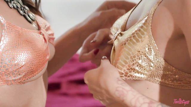 Description:In their sparkly eyeshadow and shiny bikinis, red-haired Charlotte Sins and brunette Spencer Bradley can't take their eyes off each other. These babes kiss passionately, and Spencer pushes Charlotte's top up so she can suck the redhead's pierced nipples, then they take turns licking each other's pussies. Spencer moans with pleasure as she sits on Charlotte's pretty face, then it's the redhead's turn to enjoy the same treatment. Spencer gets loud as Charlotte licks her ass while fingering her pussy, and all she can say is, "Wow!"