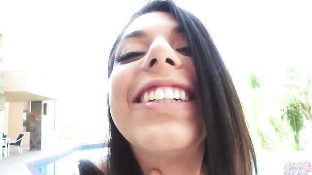 Description: Latina teen Gina Valentina doesn't need to tell you she's a horny girl. It's pretty obvious when she turns up wearing ankle-high boots, Daisy Duke cutoffs, and a skimpy white tank top. Of course, this doesn't stop her from emphasizing the point by saying it out loud. And it certainly doesn't stop her from stripping naked in our backyard, either. The naughty brunette dribbles spit all over her small tits and hard nipples, before pulling her PervCity panties into a hairy pussy camel toe. She gives us a little show with her sexy big ass, and the tease makes her hot. She's so wet by the time she's naked that she just goes ahead and masturbates outside. She doesn't care if the neighbors catch her. In fact, kinky Gina is counting on it!