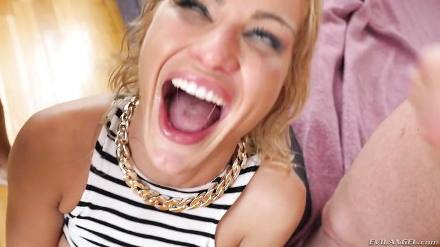 Description: Chic in a ghetto-style getup, striking blonde Cherry Kiss shows off for the camera. She meets studs Angelo Godshack and Yanick Shaft for a manhandling threesome. Cherry worships their massive pricks through a sloppy double blowjob. She moans lustfully as one guy fucks her face and the other porks her pussy. Angelo fondles her cunt to a squirting orgasm as Yanick reams her asshole, and Cherry lewdly rims male bunghole. The men subject Cherry to savage double penetration loaded with nasty gape-farting and filthy, ass-to-mouth fellatio. Cherry's serious DP session climaxes with a creamy cum facial.