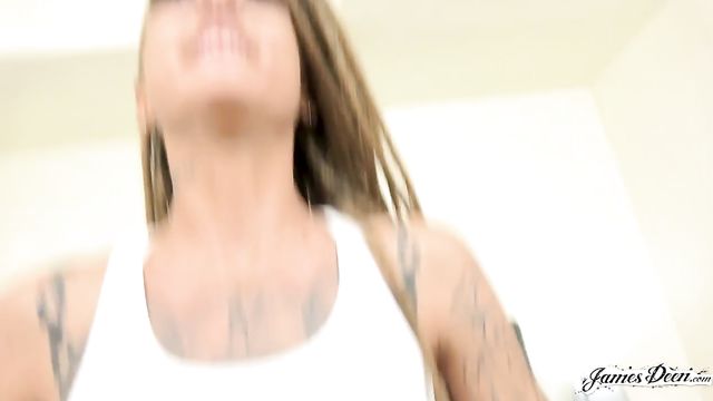 Description: You may think you’re hard rock or punk rock. But in this industry that revolves around fucking and big dick energy, James Deen is the metal. Once, a wise man once said, “you can’t defeat the metal. The metal will live on.” Kimber Veils, an aspiring porn actress, meets with James with her slutty demeanor and punk rock attitude. She may be a fan, but the metal will not give this petite beauty some slack when it comes to fucking. James interviews the athletic emo babe. He learns all about her love of sex and what turns her on. He wants to see what her dreams are in regards to the porn industry. Kimber Veils looks like an instagram model. Her body is flawless and tight. She is flexible and tan. James is enamored by her alluring look and traces every inch of her with his camera during the casting. Once Kimber Veils is properly vetted, James decides to give her holes a try too. She drops to her knees and sucks his big dick in pov. She can barely fit his massive cock into her petite mouth, but she tries her best. Kimber Veils loves big cocks. She worships his dick before opening her legs and allowing him to abuse her tight shaved pussy. The tattooed teen is in heaven and he manhandles her all over the furniture and fucks her deep and hard. She rides his cock in reverse cowgirl and cums over and over. Once Kimber Veils legs are shaking and her body is weak, she begs for him to cum. James Deen sees she is not used to this kind of intense pounding. She has never cum so much in her life. He tells her he will shoot his cum all over her fit body and give her pussy a break. And that is exactly what he does. James Deen shoots a huge load of cum all over this perfectly sculpted slut. She bathes in the porn star's cum and the ecstasy of her own orgasms.