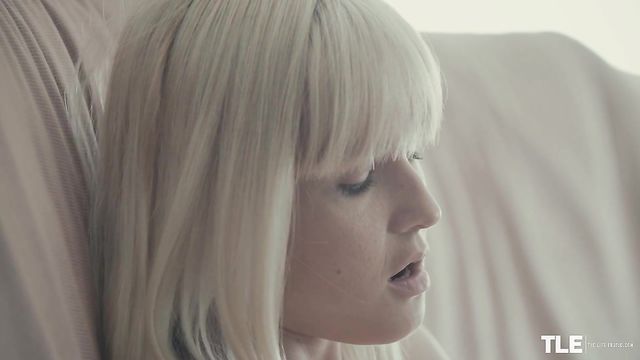 Description:Sexy Lucretia K is sitting on her couch playing a video game. Tall and slender, the brown-eyed babe from Ukraine has platinum-blonde hair, styled in a long bob with bangs. She is flaunting her long legs in white denim cut-offs, and her tight gray lace-up T-shirt clings to her pert, natural breasts and stiff nipples. She is totally caught up in her game, fingers flying nimbly over the buttons on the controller. As the action intensifies, things begin to go wrong and she becomes irritated, cursing and gritting her teeth. Then she loses and slumps back on the couch, throwing the controller aside in a rage. Suddenly, she finds herself playing a whole new game, as her hands begin to wander over her body, caressing her curves through her clothes. She toys with the laces on her tee and strokes her crotch through her tight shorts – then she strips off her top to reveal her gorgeous rack. Next, her hand slides in between her shorts and panties before she peels these off too, leaving herself naked. Now she plays with her tits and shaved pussy, tweaking her nipples and circling her fingers over her clit. Her anger is forgotten but she still has pent-up tension to release. She grabs the controller and uses one of the handles like a dildo, slipping it into her pussy – it may not be long, but it’s thick enough to satisfy. She stirs it around as her fingers take care of her clit, and moans as she builds up a rhythm. Cue a change of pose as she kneels on the couch doggy style, with her bare feet and puckered pink asshole on display. She reaches back to grind the controller against her juiced-up pussy – hard black plastic on soft pink flesh. Her pretty face is a picture of bliss and her tits jiggle with each movement. Once again she shifts position, sprawling back on the roomy couch with her legs wide apart. Her orgasm begins to build and she bites her lip, totally focussed on this horny new game. Her moans get louder and higher and she tosses the controller aside – not in anger this time, but to free both hands. She bucks her hips, fingers a blur on her clit, and tugs on a nipple, knowing which buttons to push to take her to orgasm. She cums, hard and loud, her cries melting into sighs as she relaxes, finally calm and contented…