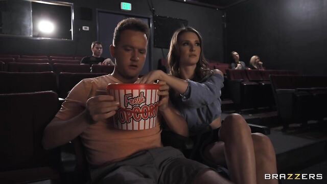 Description:Beautiful Ashley Lane and Van Wylde are on a movie date when things take an X-rated turn! The young couple can't keep their hands off each other, and their playful touching soon turns into heavy petting. Ashley gets a surprise when Van moves the popcorn bucket, and her hand reaches out for his hard cock instead. Horny Ashley can't help herself; she starts sucking Van's dick right there in the movie theatre. Soon, the two have found a secluded place in the public theatre and are having the sneakiest, hottest sex of their lives!
