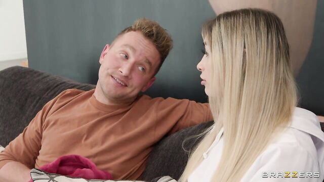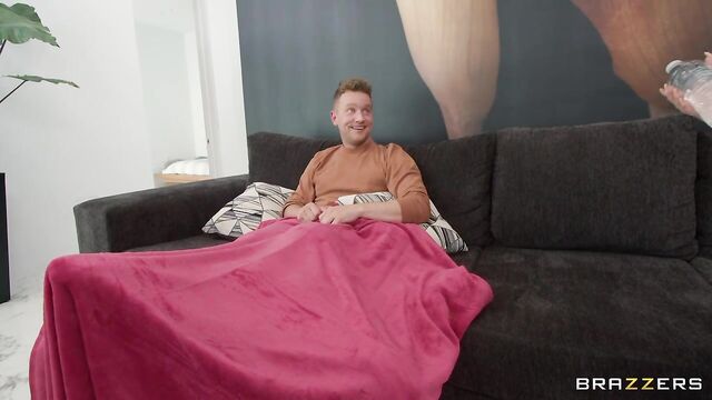 Description: Van Wylde is getting a bj from his hot blonde gf Delilah Day on the couch when he notices her hot, busty roommate Angel Youngs watching them, playing with her huge tits and rubbing her pussy! When Delilah takes a water break, Angel sneaks in and snakes that trouser-snake, deepthroating it before getting pounded doggystyle. The cheaters sneak up to the bedroom, tricking his gf by hiding under a blanket, and Van motorboats those big natties before ripping open Angel's jeans and dicking her down!
