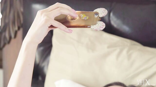 Description: Stretching awake from a long slumber, gorgeous Nasita is filled with lusty thoughts. A modern girl, her first move is to capture the moment with some selfies. Grabbing her phone, she snaps away, lifting her T-shirt to expose her beautiful breasts. It's not long before the covers are down and she's rubbing her pussy through her white cotton panties. Soon, her phone is forgotten as her hands run all over her body, playing with her titties and tugging her panties aside. She rubs her shaved pink slit, her finger finding its way inside quickly. Tugging her panties off, she turns on her bed and raises her ass, slipping a hand between her thighs and fingering herself excitedly. On her back, she snaps some pictures of her face as she rubs at her pussy, then shoots some close ups of her pussy, fanning her lips open with her fingers.